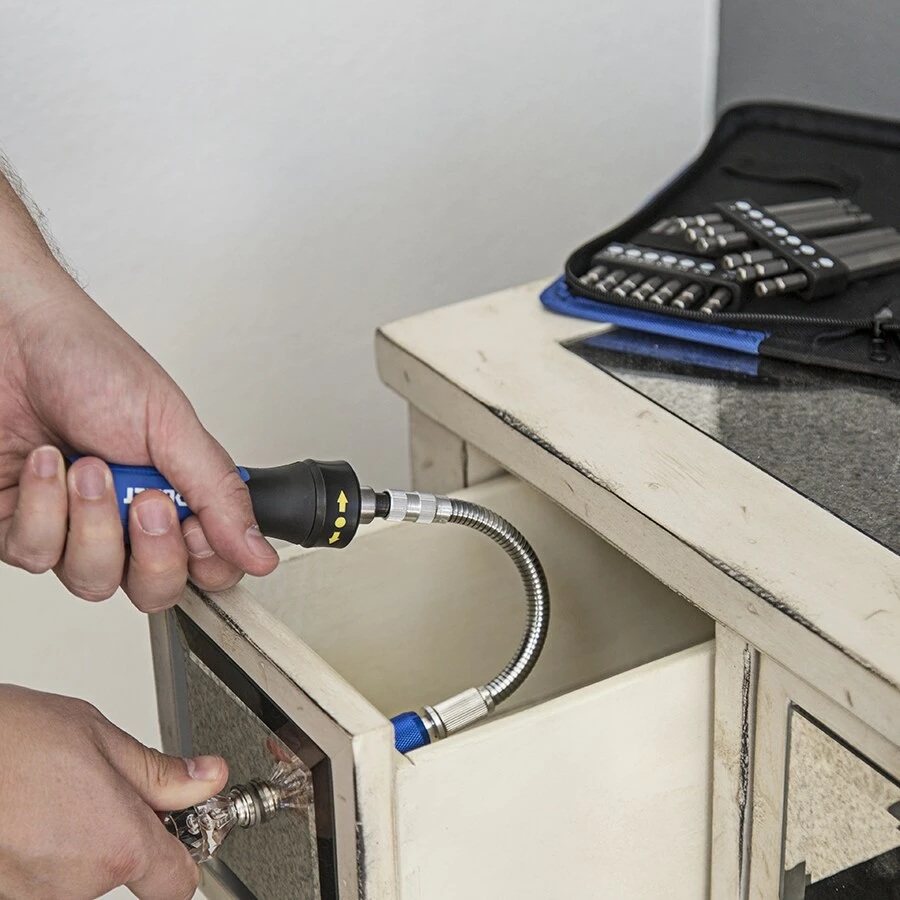 - Flexible 9-inch flex shaft bit connector for out-of-reach fasteners